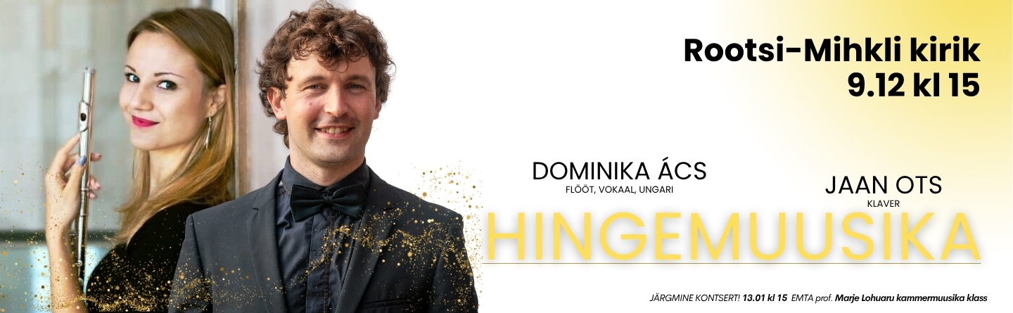EELK Rootsi-Mihkli kogudus ja Muusikute fond PLMF esitlevad Rootsi-Mihkli kirik 11.11 kl 15 HINGEMUUSIKA MUBA õpetaja Kaija Lukase viiuli- ja vioolaklassi õpilased: Viiuldajad Helena Kaiv, Evelina Vegera, Johanna Pärnpuu Vioolamängijad...