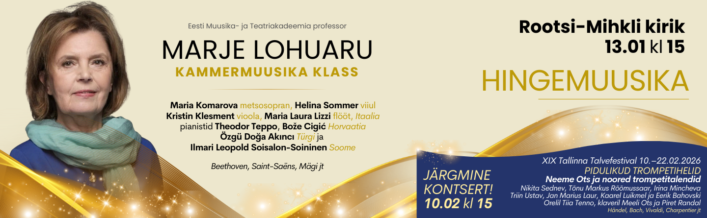 EELK Rootsi-Mihkli kogudus ja Muusikute fond PLMF esitlevad Rootsi-Mihkli kirik 9.12 kl 15 HINGEMUUSIKA Dominika Ács (flööt, vokaal, HU), Jaan Ots (klaver) Kavas: Vivaldi, Bartok, Prokofjev jt. Vaba annetus uute... |