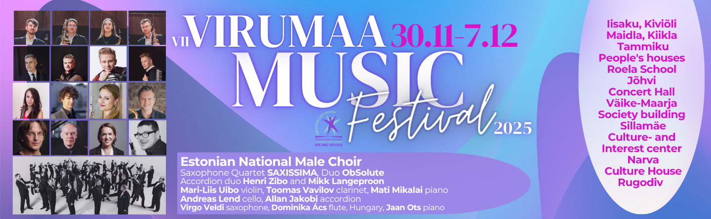 The Virumaa Music Festival has been set up with the aim of offering concert venues in the eastern and western Virua region at the presentation of the best Estonian musicians. At the first festival there were seven public concerts, schools for various instruments were carried out under the Youth Programme, and school concerts were held in Jõhvi general education schools.