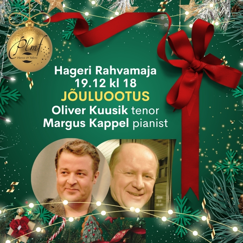 Hageri Community House and Music Trust PLMF presentHageri Community House19 December at 18 PMCHRISTMAS ANTICIPATIONOliver Kuusik (tenor), Margus Kappel (piano)Melodies from the repertoire of Ots, Lanza, Montand, Ruja, and works...