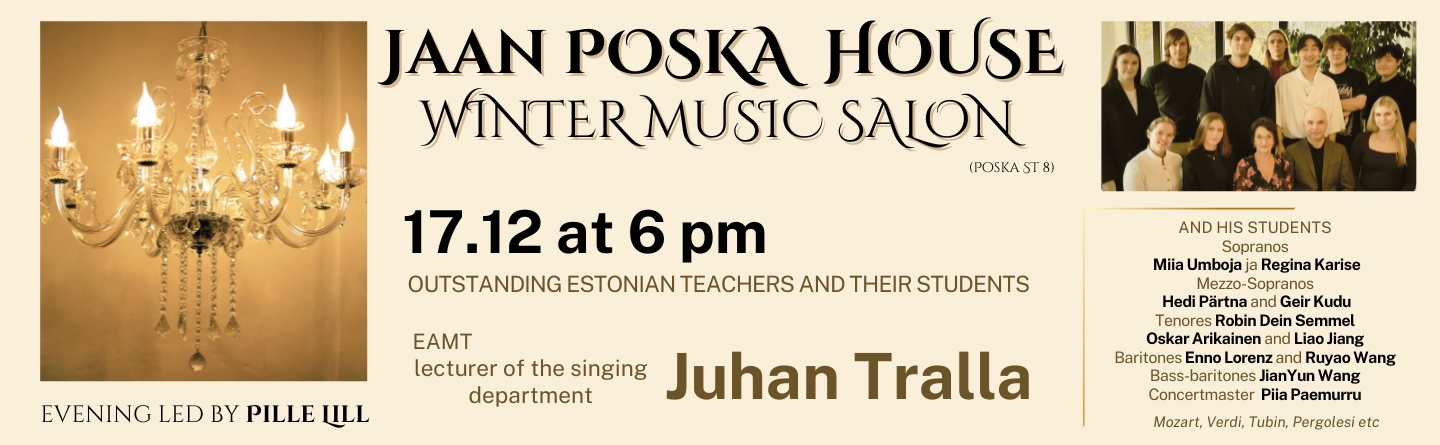 Pärnu City Government, EELC Pärnu Elizabeth’s Congregation and Music Trust PLMF presentSt. Elizabeth's Church in Pärnu4th of December at 6 PMWAITING FOR CHRISTMASMaria Listra (soprano), Piia Paemurru (piano)Program: Mozart, Schubert,...