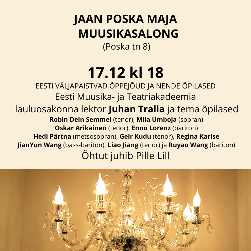 Pärnu Eliisabeti kirik Nikolai 22, Pärnu, Pärnu maakond, EestiPärnu Linnavalitsus, EELK Pärnu Eliisabeti kogudus ja Muusikute fond PLMF esitlevad Pärnu Eliisabeti kirk 4.12 kl 18 JÕULUOOTUS Maria Listra (sopran), Piia Paemurru (klaver) Mozart, Schubert, Härma, Ehala jt. PILETID...