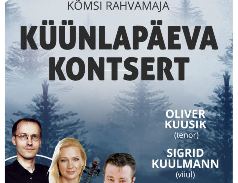 2. veebruar kell 19.00 Kõmsi Rahvamaja Oliver Kuusik (tenor) Sigrid Kuulmann (viiul) Ralf Taal (klaver) Kavas: Schumann, Kreisler, Rahmaninov jt Vaba sissepääs